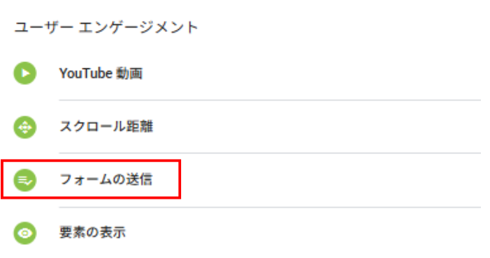 トリガーのタイプを選択すると、「ユーザーエンゲージメント」の欄にフォームの送信があるので選択します。