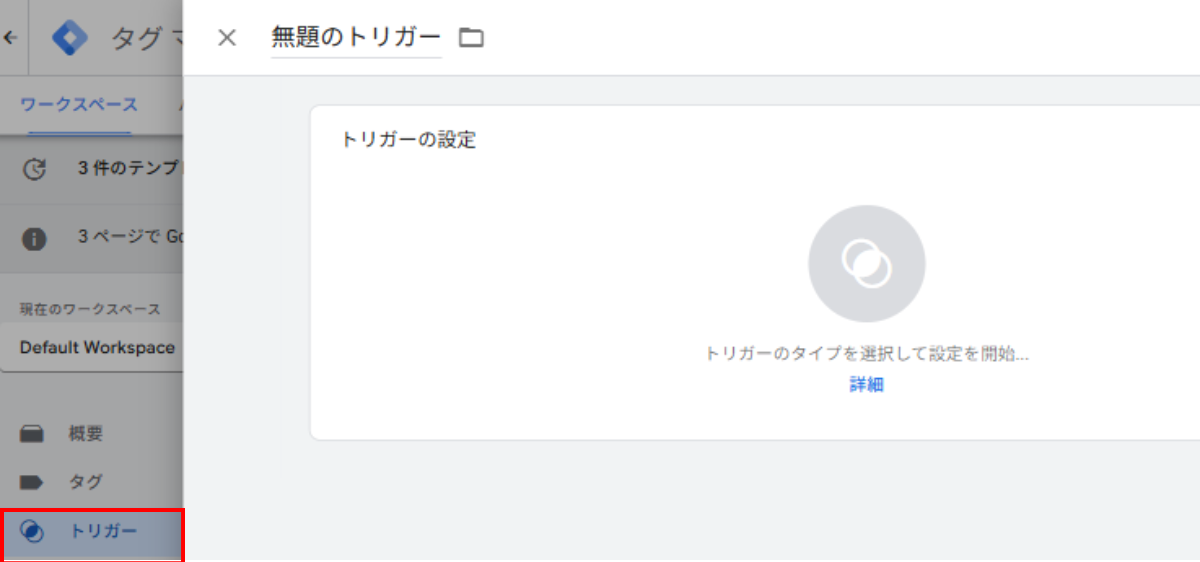 画面左のトリガーをクリックし新規のトリガーを作成します。