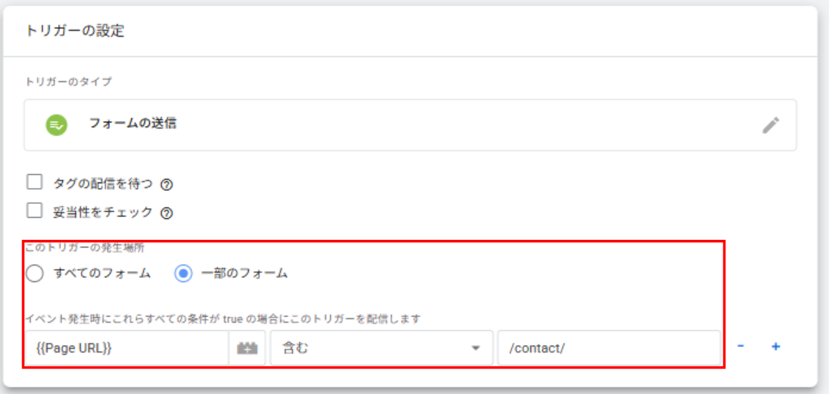 | ② | PageURLが対象フォームのあるページのURLを含む(例:/contact/ を含む) |