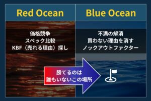 多くの企業は「KBF(購買決定要因)」つまり「売れる理由」を探そうとします。「より軽く」「より安く」。しかし、成熟した市場では、それは全てやり尽くされています。